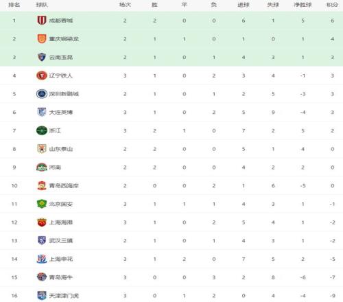 更让两大豪门绝望的是,踢完三轮联赛还是负分,要是本轮成都蓉城取胜的话,北京国安、上海申花都会落后榜首超过十分。