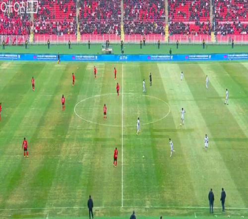 本场比赛是15:30开球,但由于无人机的干扰,主裁过了四五分钟才吹哨开赛。由于现场气温比较低,双方球员开始在场上互相传球热身。