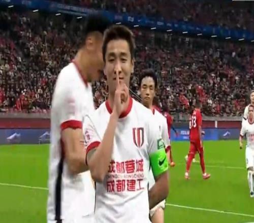 第27分钟,韦林顿突入禁区被阮奇龙拉倒,主裁判判罚点球,韦世豪主罚点球破门,1比0!成都蓉城取得领先。进球之后,韦世豪对着镜头做出闭嘴动作。